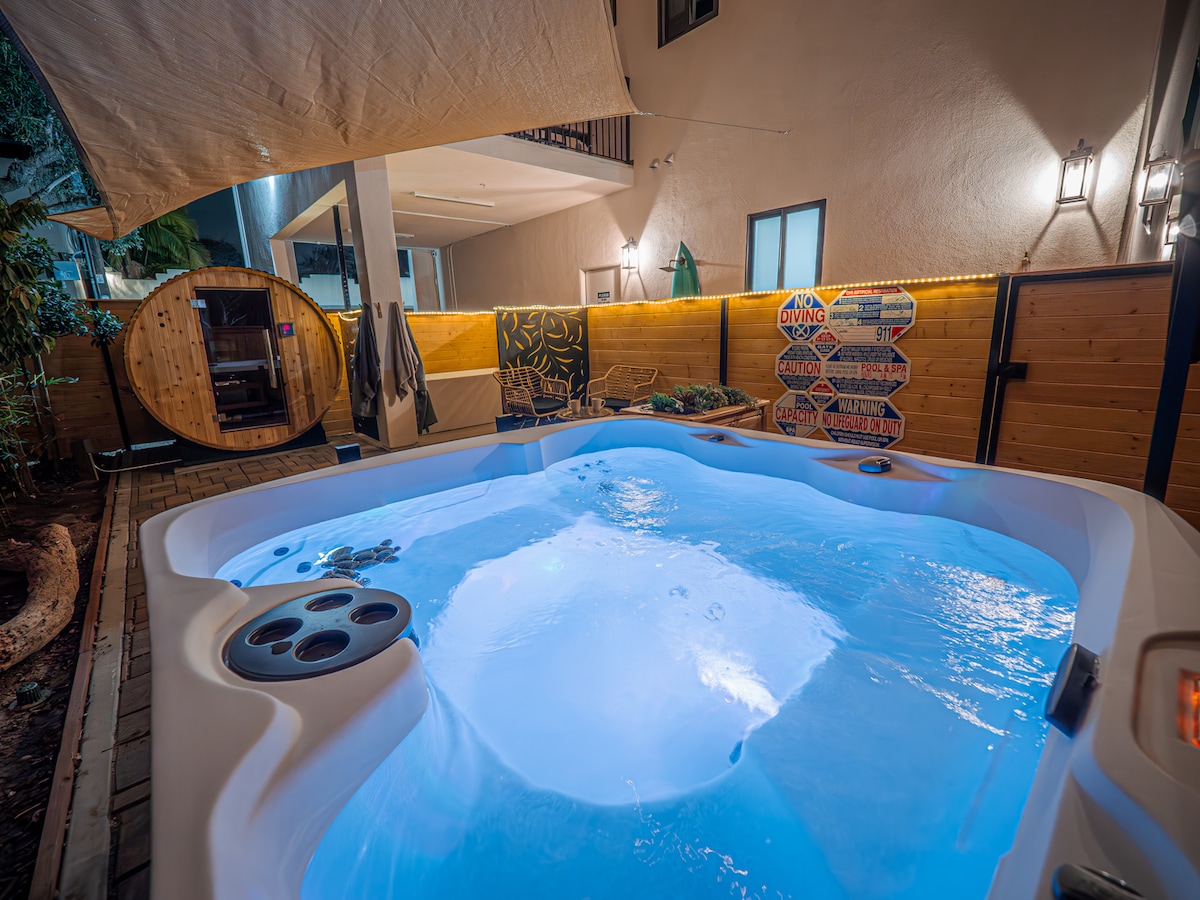 Experience the Finnish barrel steam sauna, soothing hot tub, and invigorating cold plunge, all within the tranquil embrace of this beautifully designed condo. It's perfectly suited for various occasions and travel needs. This quiet retreat is a 5-10 minute stroll to the Beach, Pier, and Downtown. Coffee and breakfast bites are just outside your door. The kitchenette features a single-burner cooktop and an 8-in-1 bake/air-fryer, ideal for small meals. A signed release waiver is required.
