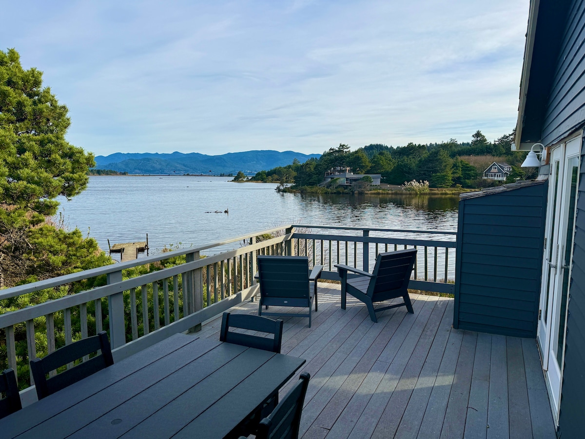 This lovely 1930’s cottage has recently been renovated, but still has that cottage charm. Great view of Netarts Bay, comfy queen bed, and modern kitchenette. You’re just a short walk down the stairs to the bay, or you can relax in the beach chairs out front. Guests love the cottage feel and being able to watch the pelicans and herons or catch a beautiful sunset. It is one of two units with a common wall specially sound proofed for complete privacy.