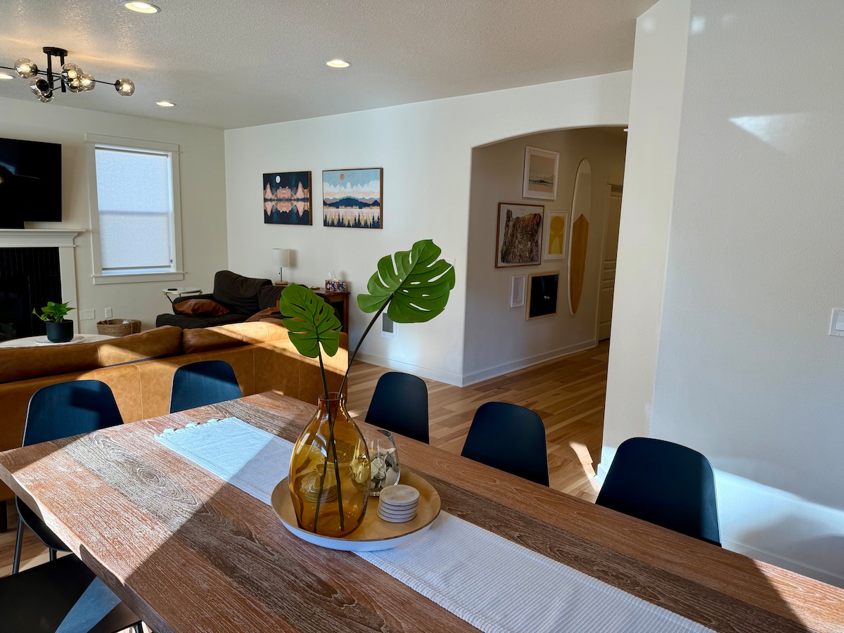 This modern new build house perched by a little verdant forest in a lovely quiet neighborhood. To provide more joy and vacationing memories for you, we also have a full-on game room with a foosball and air hockey table to embark on some friendly competition. Loser buys pizza! Even more, there is a complimentary luxury hot tub to add some opulence to the mix, wonderful for relaxing with wine in hand while enjoying the many daytime forest sounds or viewing the nighttime stars.