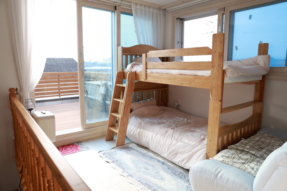 Welcome to Daecheon Beach Apartelle. You can use a barbecue tools, outside shower facility, 3 rooms, 2 toilets, a spacious living room, a kitchen and others. You can walk to Beach. We are considering your convenience for your comfortable rest always. We will do our best to make your wonderful trip with your loved your family.