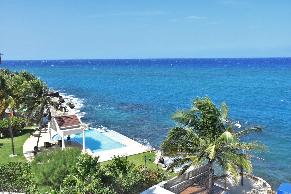 This ocean front penthouse apartment is located in Tower Isles at the border of St. Ann’s and St. Mary. The Apartment is a short drive (5 mins) from the Town of Ocho Rios, making you just steps away from beaches and major attractions such as Dunn's River Falls, Mystic Mountains and Dolphin Cove. With stunning views from the top floor, you will undoubtedly feel like you're "Floating on Water". We offer a great deal on longer term stays past 28 days, feel free to reach out to host for more info