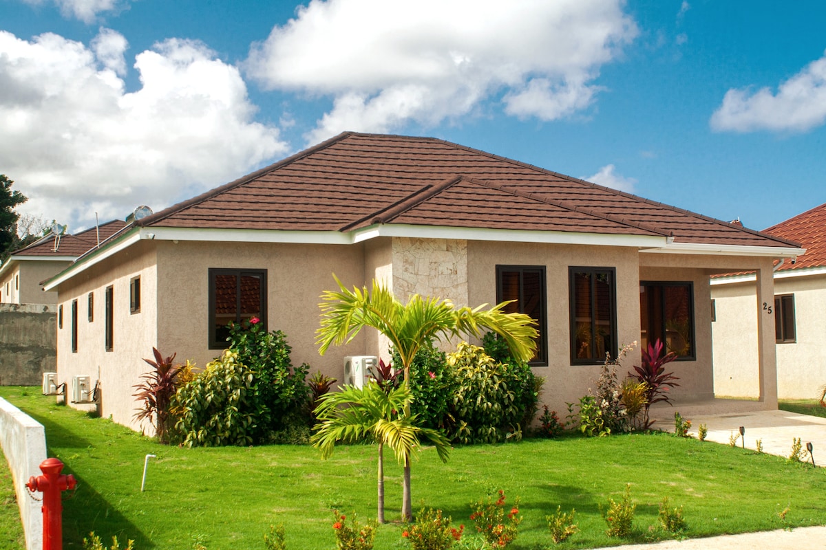 No damage from Hurricane. Solar power. Water tank. Reverse osmosis drinking water. 17 min to downtown Ocho Rios. 11 min to Dunn’s River Falls, Mystic Mountain and Dolphin Cove. Walking distance to Starbucks, KFC, Pizza Hut & supermarket. Free beach access at The Cove, 15 min walk/ 3 min drive. Secure gated community: shared pool, tennis court, 24-hr security. A peaceful, low key atmosphere, suitable for families + professionals. NO PARTIES. Need more room? Ask about our sister property.