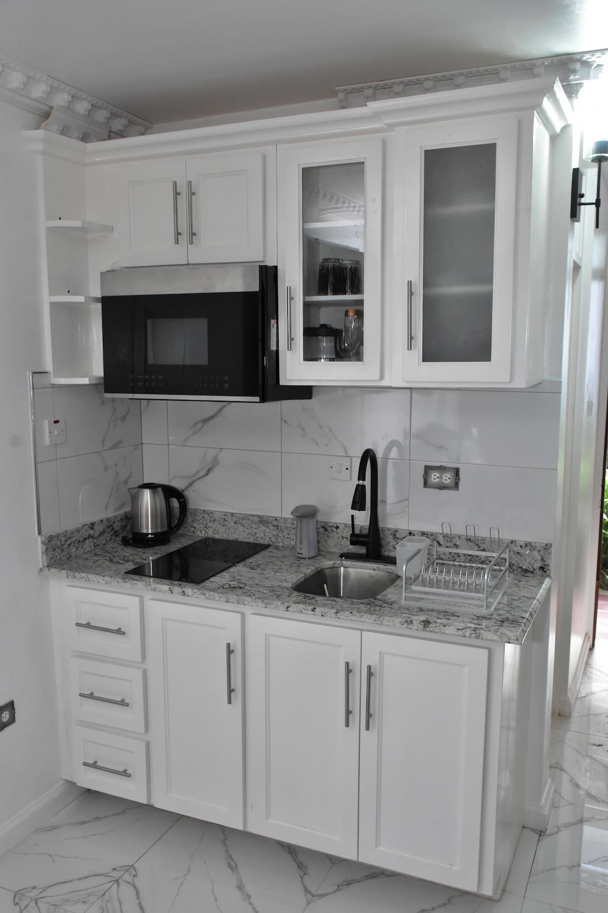 Newly renovated 1 bedroom apartment, designed for a modern lifestyle, Platinum Apt @Sky Castles features an open layout with a calm and inviting decor for the discerning traveler, with high end finishes and all the comforts of home. The apartment boasts contemporary kitchen appliances, SMART TVs and a private porch with a spectacular panoramic view of Ocho Rios, the beach and the Caribbean Sea. The property is near all major attractions and a few minutes walk to beaches, restaurants and stores.