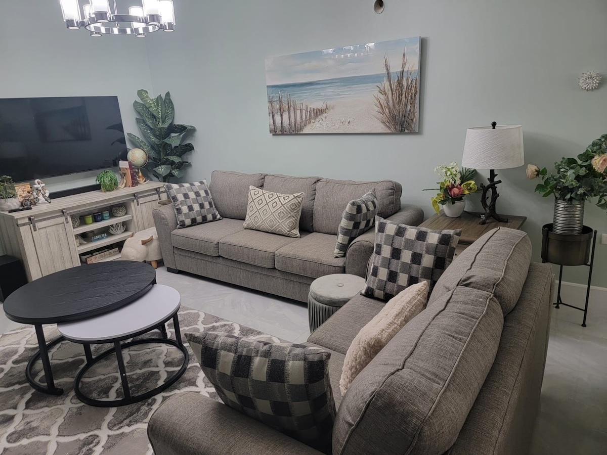 Luxe Modern Centrally-Located Open concept newly designed with modern comfy furniture.This 7 beds , 4 bedroom/ 2.5 bath is located in Private Gated community with Sparkling Pool.Stainless steel appliances, tile floors, chef’s Kitchen with/pots and pans. Large Master bedroomw/King bed, sitting area, Full Bath, Private Patio.5 Minutes to Dunn’s River, MysticMountain,Dolphin Cove, Starbucks, Beaches.Fenced back yard. Free parking, Starlink, two 58inch Smart Tv, Disney Plus,Netflix.Pool Table/Games