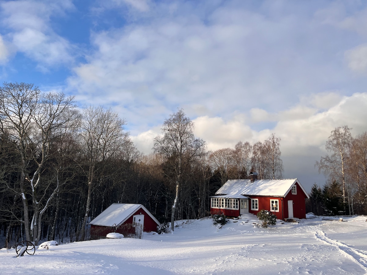 Mysig stuga i kanten till naturreservat