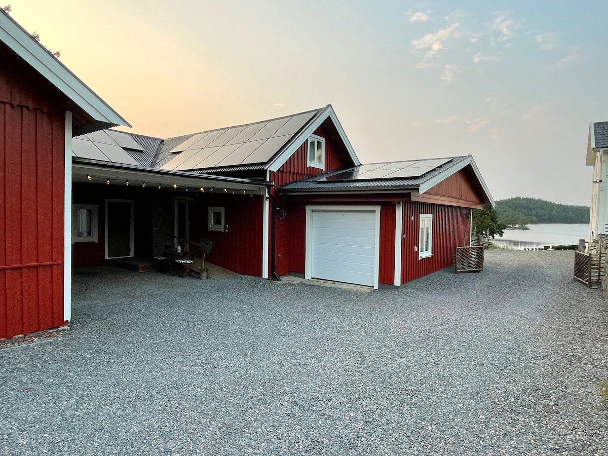 Lyxigt skärgårdshus med havsutsikt och spabad.