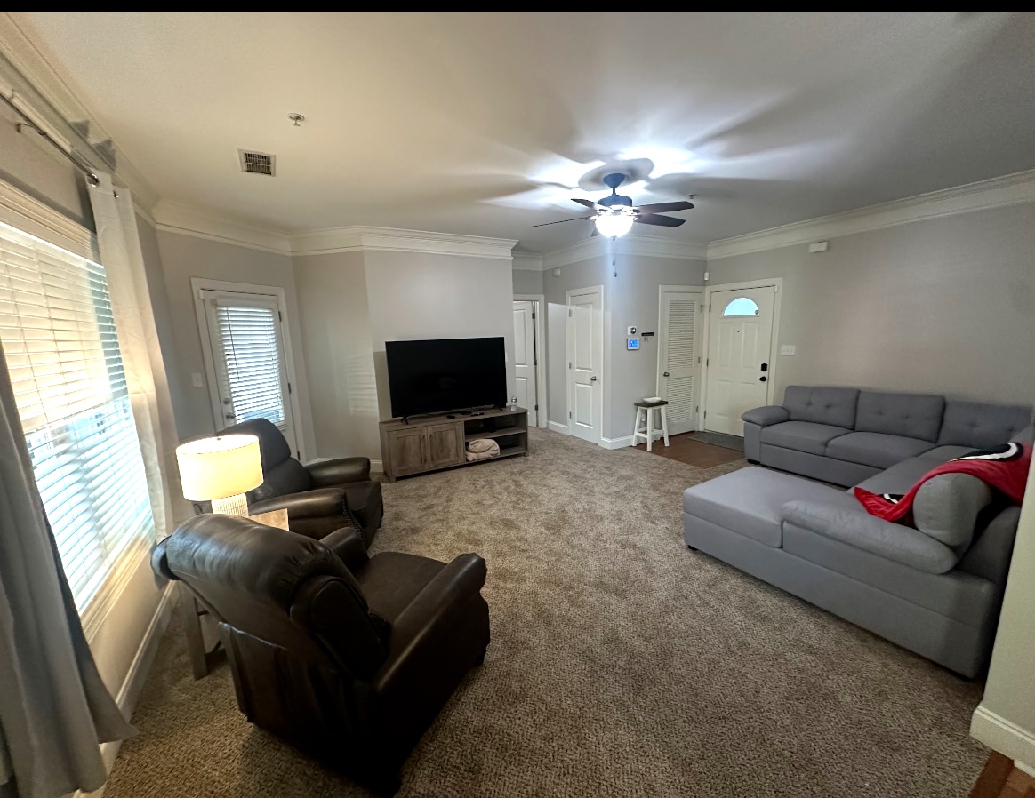 -Almost 1200 tastefully designed square feet - corner unit on the ground level -Spacious living and dining area with plenty of room for entertaining -1 mile walk or short drive to Sandord Stadium, Classic Center and Downtown -King beds and private bathrooms for each bedroom -WIFI, 55” Smart TV with full cable + streaming options -Fully stocked and equipped kitchen -Free and convenient parking just steps from the front door -Private back patio