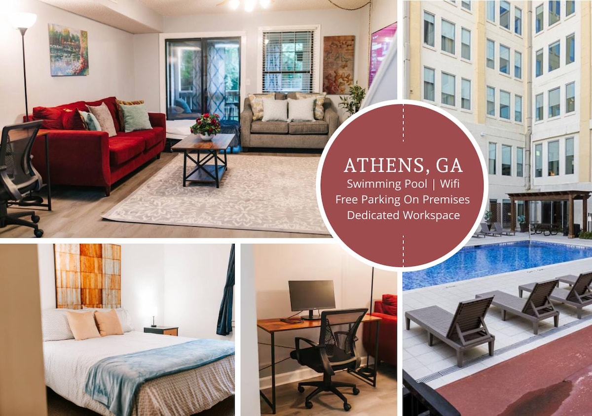 Welcome to our elegant apartment, perfectly located near the University of Georgia. Whether you’re attending a Bulldogs game, a leisurely 20–25 minute walk or a quick 5-minute drive to Sanford Stadium ,visiting campus, or exploring the lively Athens community, this fully-equipped apartment offers everything you need for a comfortable and convenient stay. ☀ Pool ☀ Free Parking ☀ Roku ☀ BBQ Grill