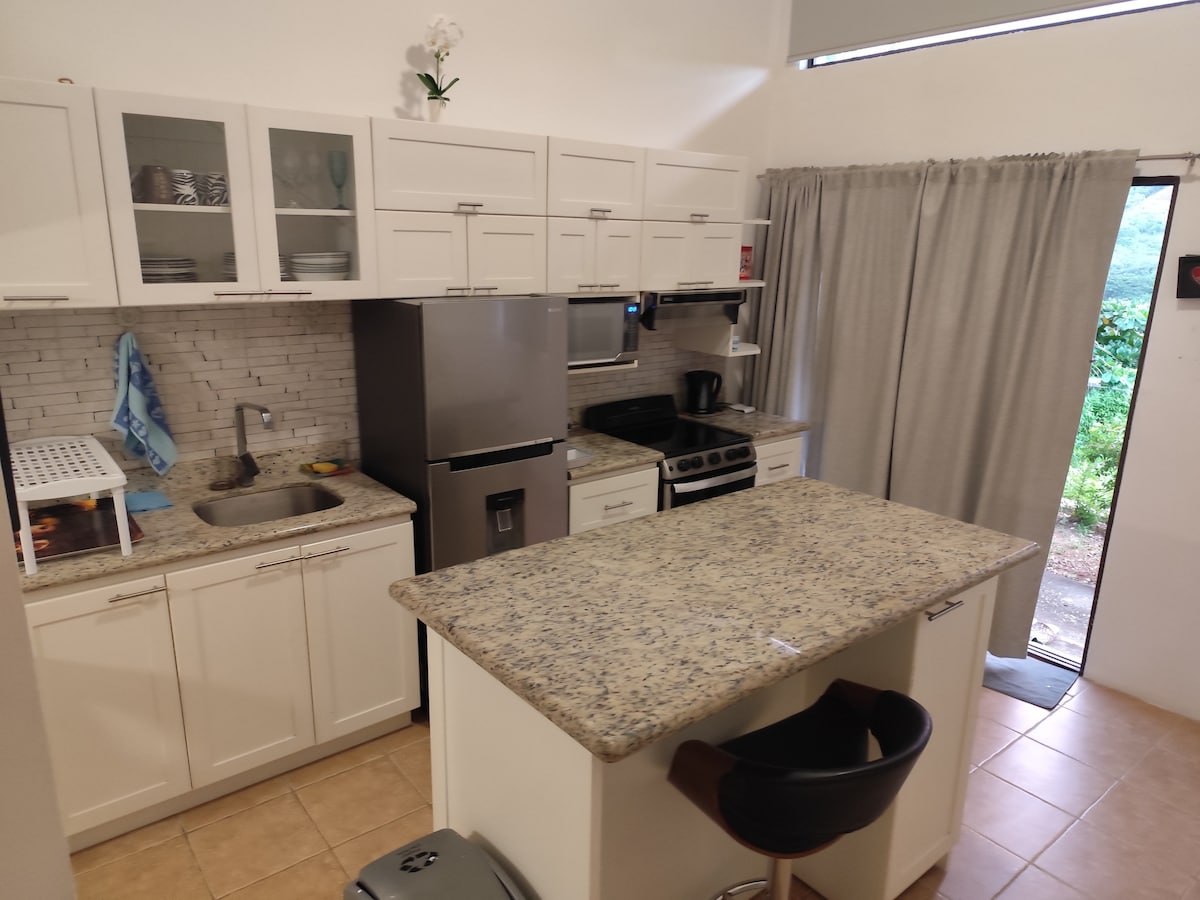 Bienvenido! Welcome to The Casa Aire Complex. Casa Aire Complex is an Eco-Friendly development with five unique homes .Apartment has - 1 bedroom 1 bath and a sofa bed on living room., sleeps 3 comfortably . All home-styles are insulated for energy efficiency and fully furnished. Guanacaste and other local woods are used in the interior design. The property has on-site grounds and security personnel on site . General common area is share for parking among the other units.