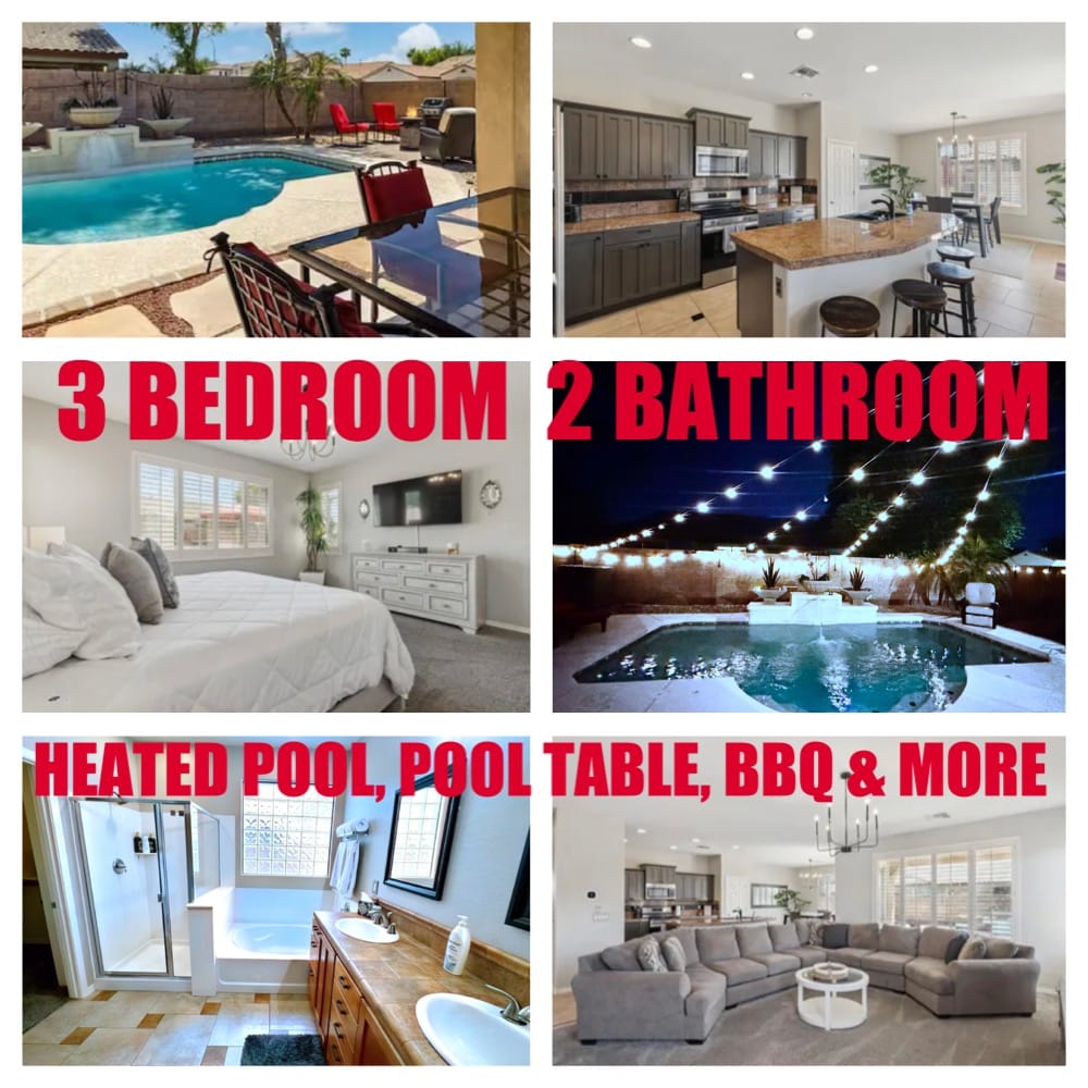 Let this marvelous 3-bedroom, 2.5-bathroom Chandler retreat with 5★ amenities elevate your next Arizona getaway! Whether you’re relaxing by the private heated pool, exploring nearby golf courses, or enjoying cozy nights in, this home has everything you need. ✔ Highlights: ➜ Just minutes from the Ocotillo Golf Club ➜ Private heated pool & hot tub ➜ Spacious layout – approx. 2,240 ft² / 208 m² ➜ Free parking for 2 vehicles in the driveway ➜ MORE PHOTOS BELOW – keep scrolling!
