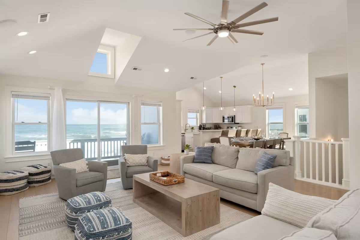 Wave House, or WAVEHOUSEOBX is our newly remodeled oceanfront and beach front home in the Outer Banks. Embark on an unforgettable Oceanfront experience at our Outer Banks beach house with plenty of rooms and full of ocean views. Soak up the sunrise views over the Atlantic ocean and dive into luxury with an in home elevator, a heated pool, a hot tub, and a game room for endless fun. Fully stocked gourmet kitchen with top-tier appliances and cookware.