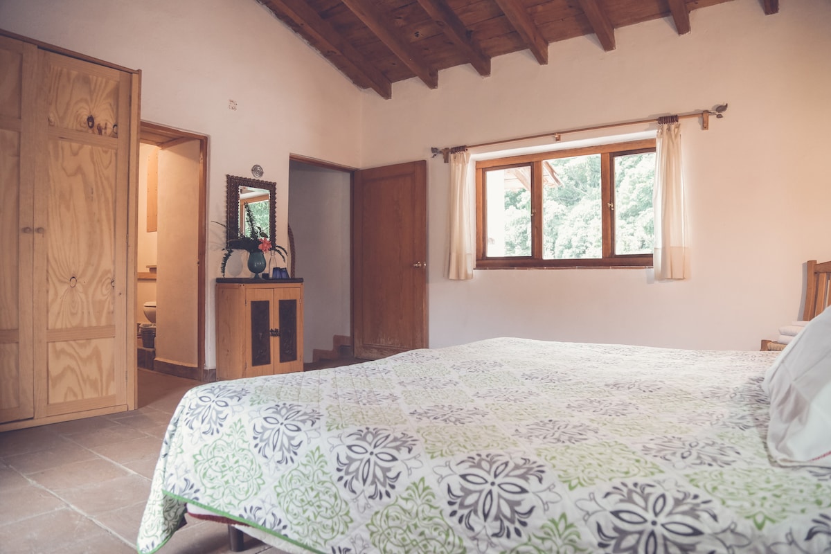 Quinta Cielo es un casa campestre tradicional mexicana, con el concepto de un ambiente artístico, con buena y sana comida, rodeada de una huerta ecológica. Nos encontramos en Malinalco, Estado de México a 90 kilómetros de la Ciudad de México. Se parte de la experiencia de hospedarte en una deliciosa y relajante suite en Quinta Cielo, Malinalco. Cuenta con cama king size, un hermoso jardín con alberca. Desayuno incluido con frutas y café de la huerta.