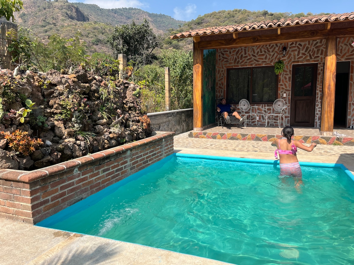 Disfrute de la gran privacidad y tranquilidad que ofrece este alojamiento Pet Friendly al estar situado en una calle cerrada a lado del río. La casa ofrece hermosas vistas a las montañas y amplios jardines con árboles frutales. Cuenta con una gran piscina con chapoteado para niños pequeños y una zona mas profunda para adultos. La casa se conecta a través de amplias terrazas, también cuenta con palapa y asador, internet de alta velocidad y todos los servicios necesarios para una cómoda estancia.