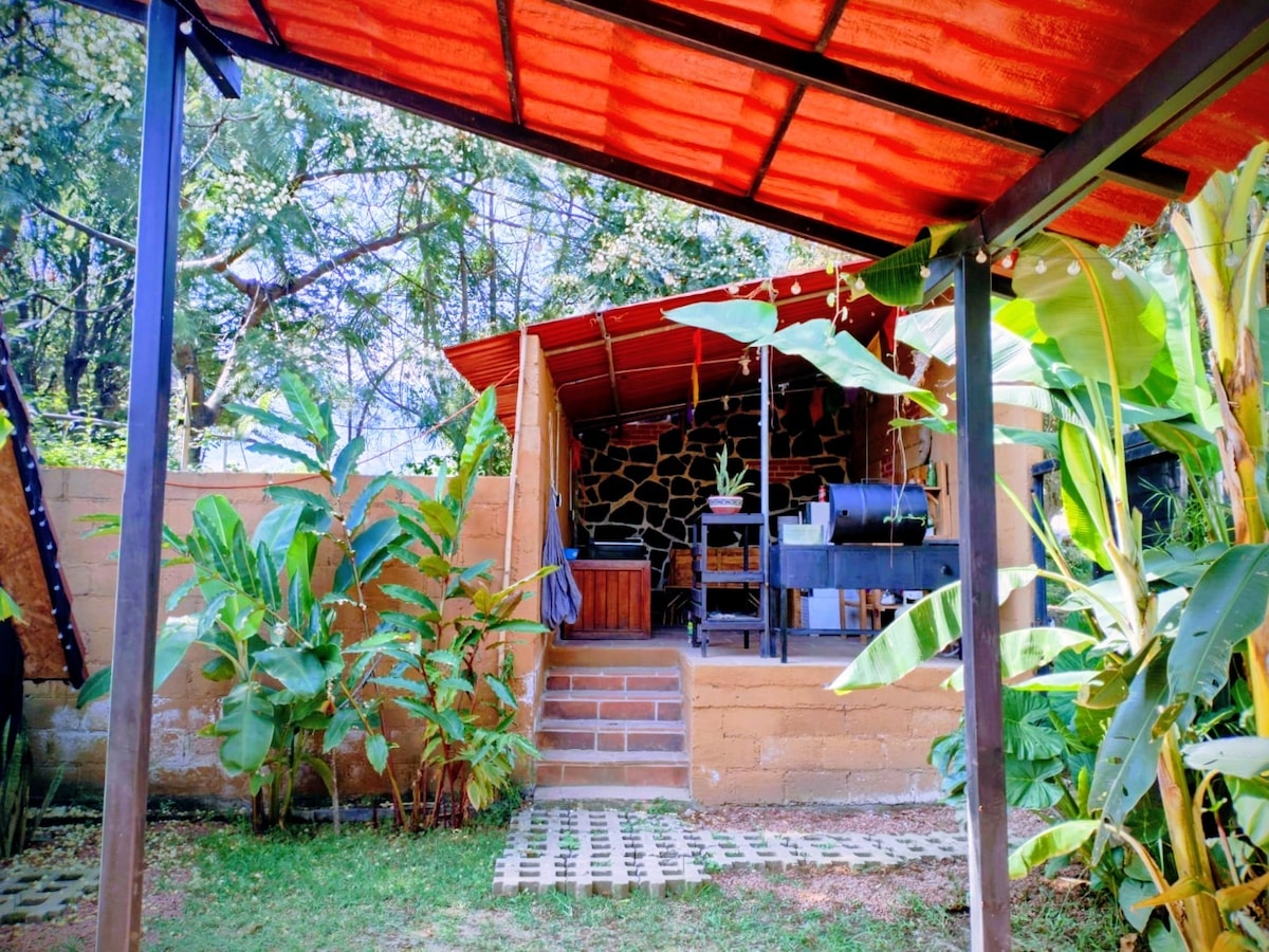 En zona campestre (La Ladrillera), a 3 km del centro de Malinalco. Búngalo con cama king, baño, cocineta sin estufa, terraza ala-comedor, jardín de 50m2 y alberca (4x3 + .80m) exclusiva para huéspedes, con calefacción solar rústica. WiFi. Cortesía: pan artesanal, mermelada, café, sal, pimienta y servilletas. Ideal para descansar y olvidarse de la ciudad. Check in a partir de 13:00pm y no más de las 20:00 pm. El búngalo está en terreno de 2,000m2 donde viven los anfitriones. No aceptan máscotas.