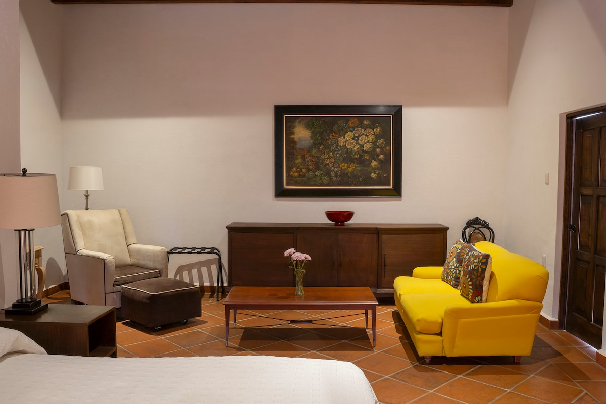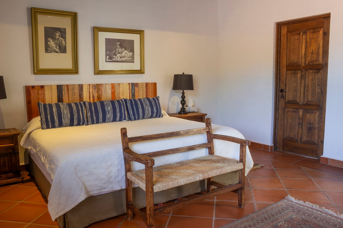 Located on an elevated terrace, Casita la Peña offers panoramic views of the mountains of Malinalco. It has a king-size bed, private bathroom and a fireplace for cool nights. It is perfect for those seeking a more intimate connection with nature.