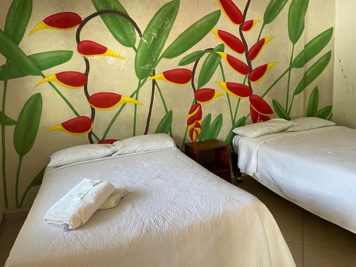Acogedora habitación en una encantadora casa de campo a cuadras del centro de Malinalco. Este espacio privado cuenta con un baño completo dentro de la habitación, asegurando comodidad y privacidad. Accede directamente desde el jardín, donde podrás disfrutar de una hermosa vista a la alberca y al exuberante paisaje que la rodea. Ideal para relajarte y desconectar, esta habitación ofrece un ambiente tranquilo y acogedor, perfecto para una escapada en pareja.