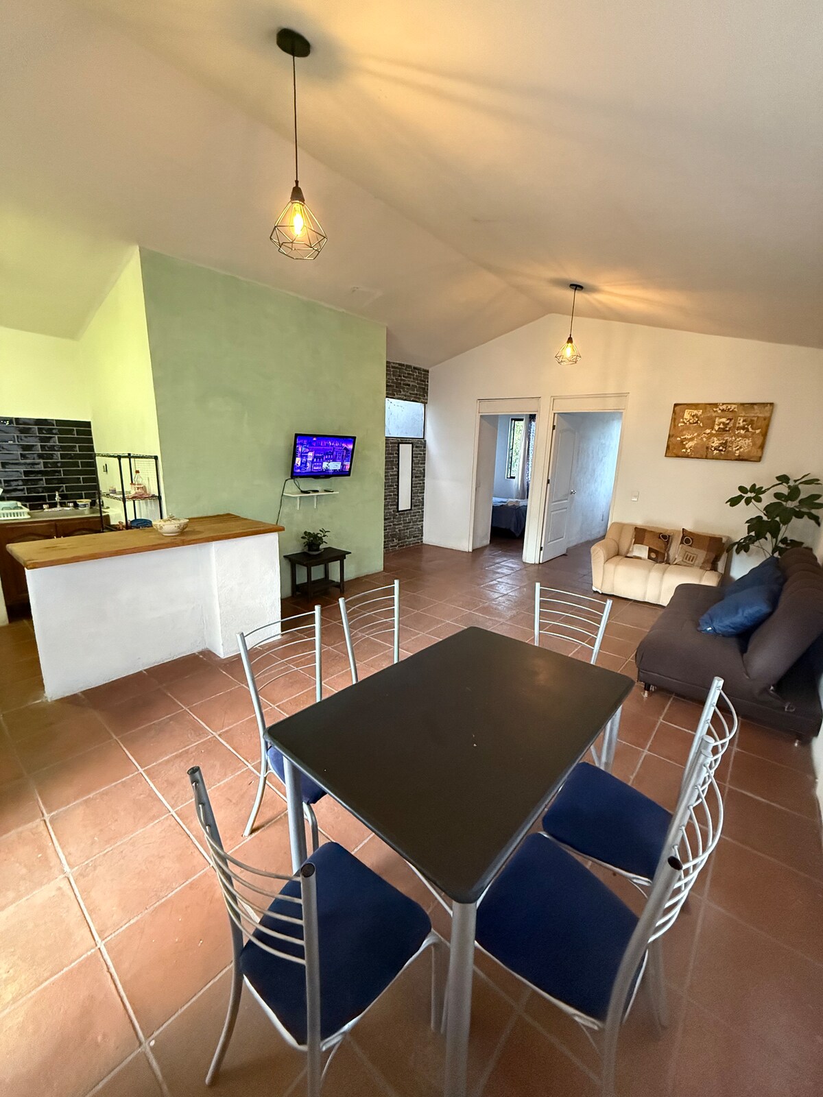 Hermoso departamento con vista a las montañas de Malinalco y en el corazón de este Pueblo Mágico. La cercanía con el centro te permitirá recorrer todos los atractivos que aquí existen ya que están a sólo a unos pasos. Lugar ideal para parejas o familias pequeñas ya que cuenta con todo lo necesario para su estancia. En la terraza encontrarás un espacio para descansar y recordar los momentos que has vivido en Malinalco. Recibimos UNA mascota pequeña o mediana