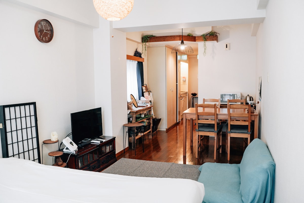 距离车站5分钟的独立单间公寓!在宽敞的房间(50平方米)内放松身心!免费停车场、无线网络、
