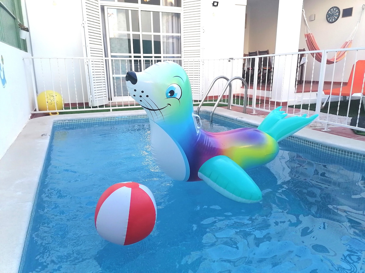 Casa Child friendly, totalmente equipada com 3 quartos, 2 casas de banho, cozinha, casa de jantar e sala de estar com vista e acesso para o pátio e piscina. BBQ e mesa para refeições ao ar livre e ainda terraço para banhos de sol. Piscina com grades, por isso é o local perfeito para férias em família com crianças. Pequeno almoço e transfer de/para aeroporto (custo adicional) Estacionamento privado Ar condicionado, wi-fi 1000Mb/s, smart tv, Netflix welcome drink. Beauty & wellness experiences.