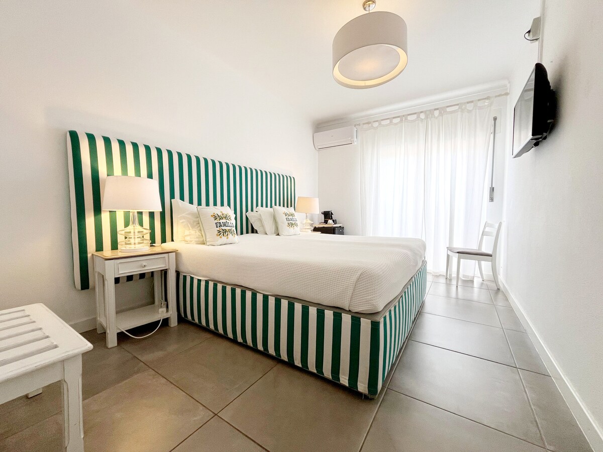Fique connosco no nosso Quarto Familiar. Desfrute do quarto com cama de casal e da área de estar com sofá-cama que pode acomodar 2 crianças ou 2 adultos. Este alojamento é ainda constituído por uma casa de banho privativa com duche e bidé.