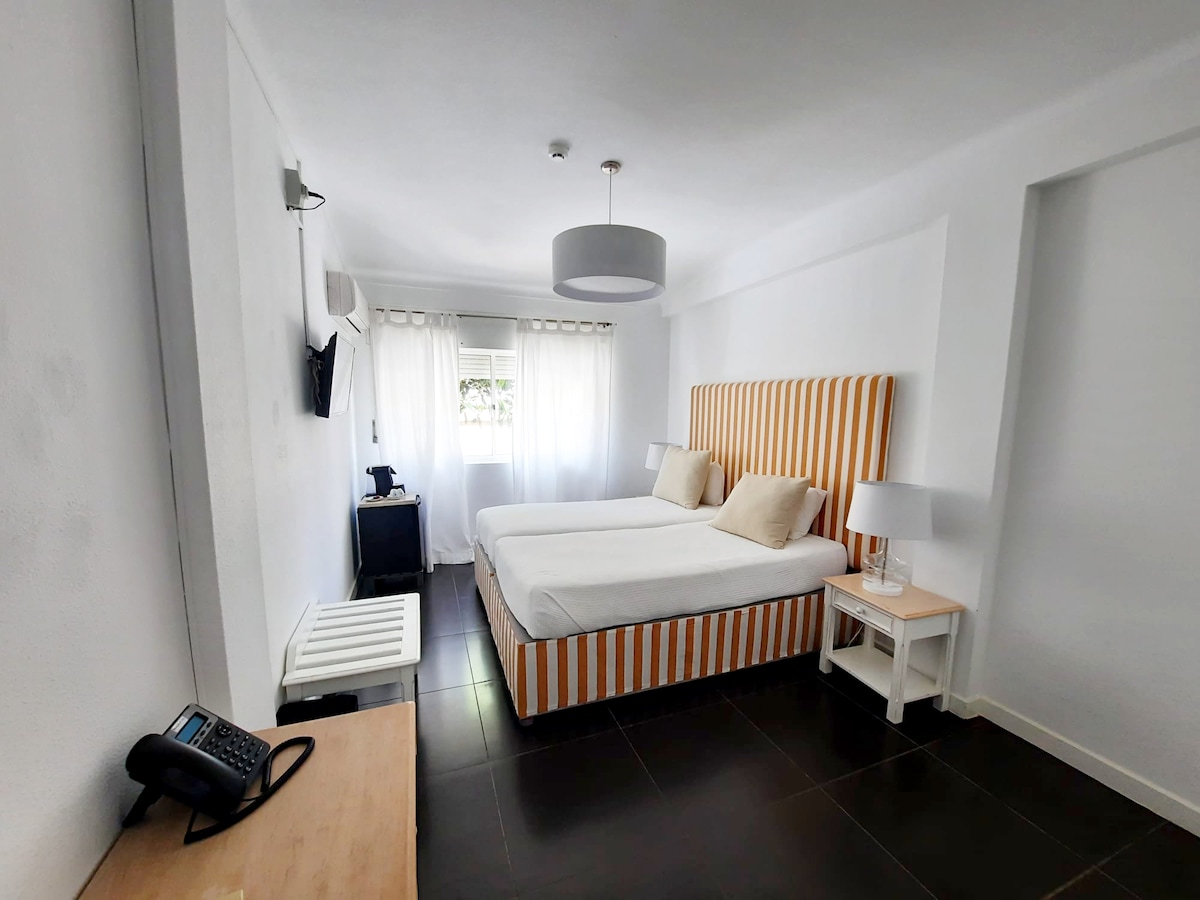 O quarto twin inclui duas camas individuais. Como principais comodidades destacamos: ar condicionado, minibar, secador de cabelo, televisão com canais por satélite, uma casa de banho privativa com duche e uma varanda.