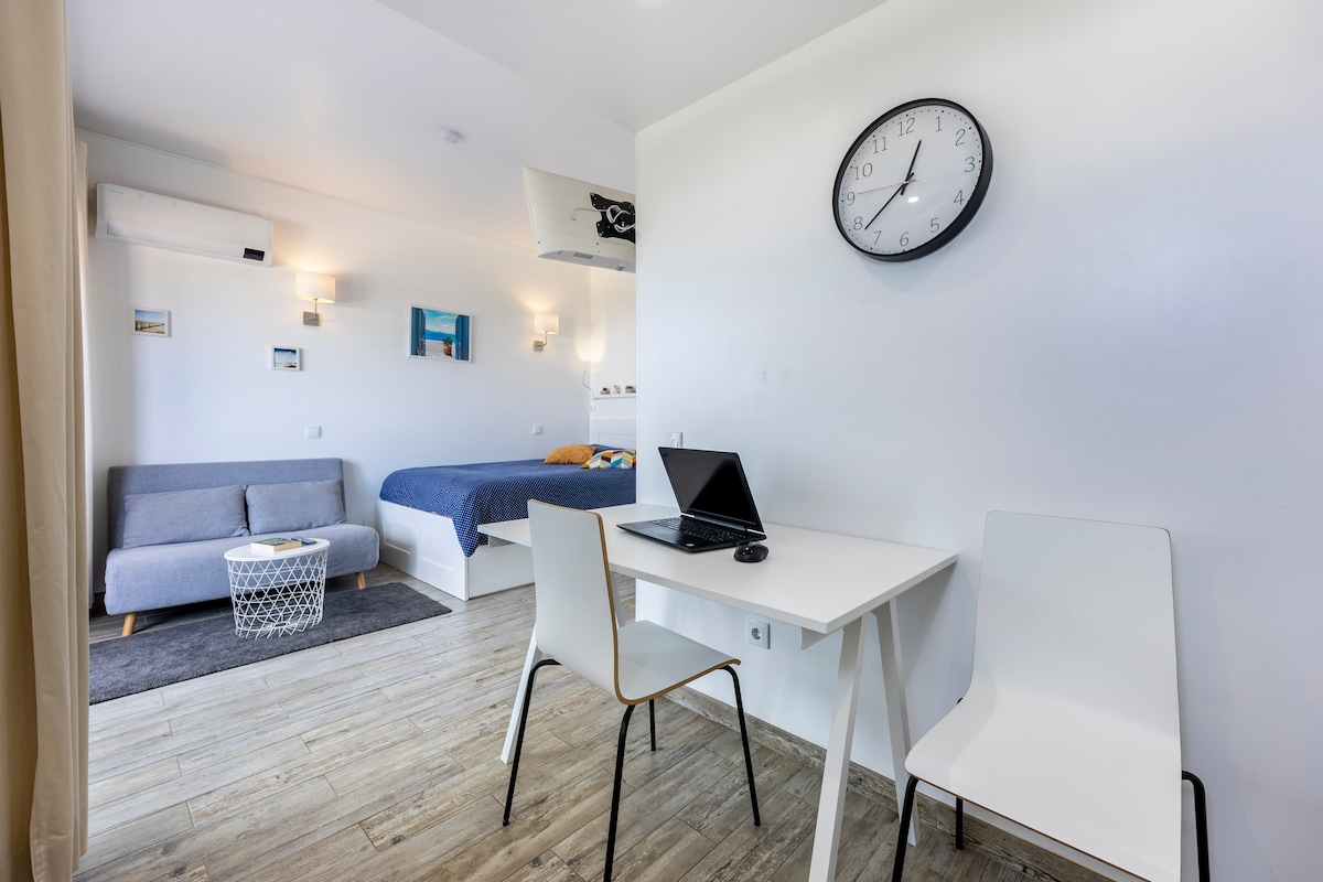时尚阳光公寓,标准双人床,步行5分钟即可抵达海滩
