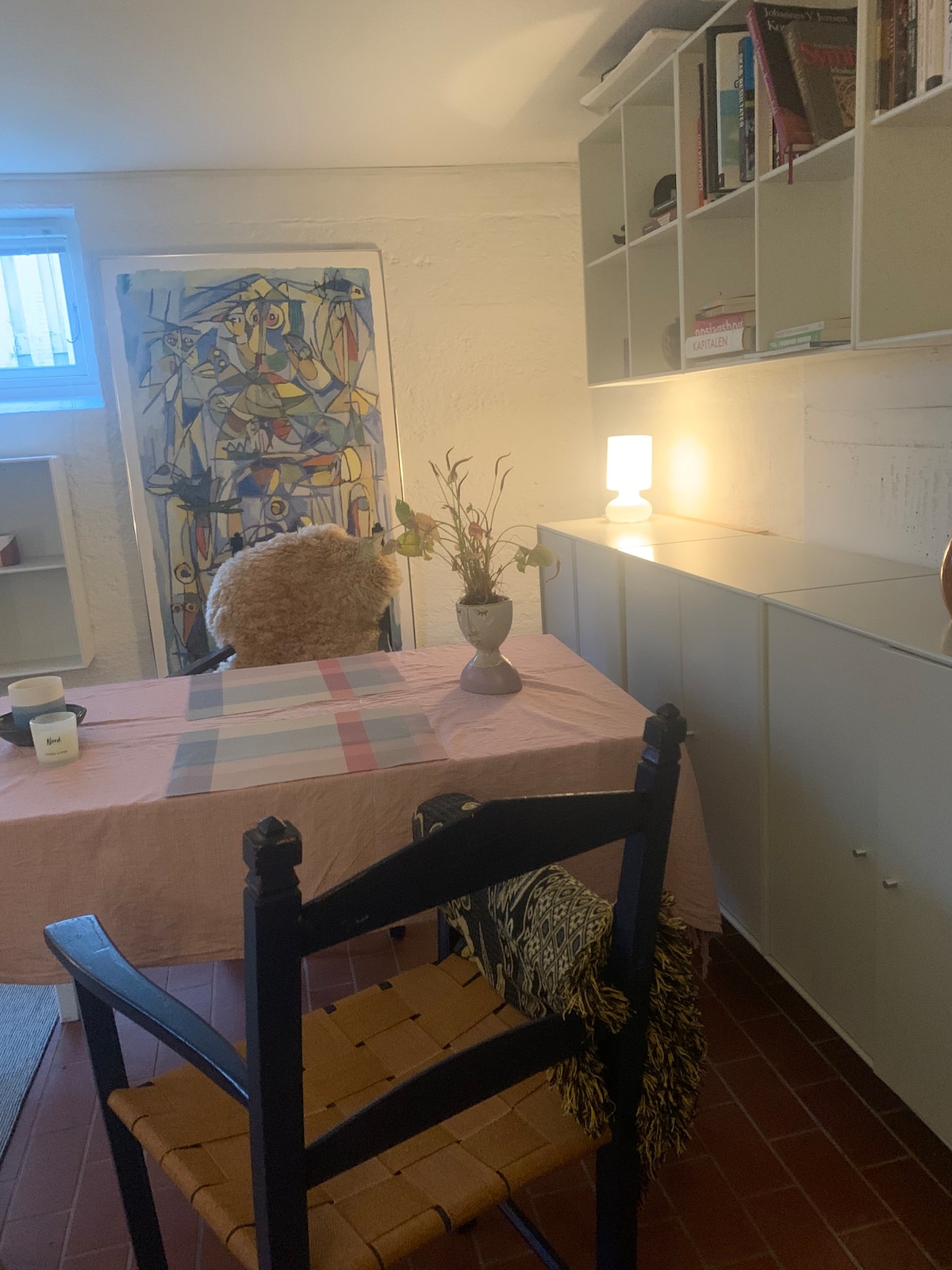 Cozy large room in a bright basement. Private entrance. There is a double bed (140x200) and a single bed (90x200). Desk that can also be used as a dining table. There is a kitchenette with dishes and kitchenware for light cooking. Hot plate and microwave. There is always coffee and tea available. Large bathroom, which is also used by the other residents of the house. Good parking conditions. Option to borrow a bicycle.