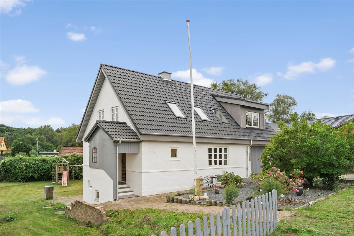 There are a lot of different things you can experience in Fyn. Many of the things you can see here: defynskeattraktione. It is the perfect vacation island The majority of the square meters is a large family room, with a height of 5.5 meters to the ceiling, in a half and a half level, where the entrance, kitchen-dining room, office and the living rooms are in open connection. There are only doors to the bedrooms and bathroom