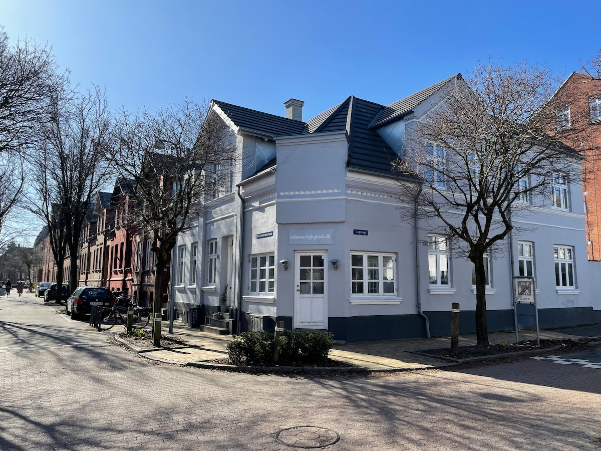 Huset er udvalgt, renoveret og møbleret eksklusivt af Køkkenskaberne. Møbler og materialer er en ubesværet fusion af unika objekter og vores eget design kombineret med inspiration fra det unikke lokale miljø. Lejligheden er beliggende i det centrale Odense, 100 m fra kulturcenteret Brandts klædefabrik og div. spillesteder. Der er masser af gode restauranter i området, men har du mere lyst til en hyggelig middag derhjemme, venter det fuldt udstyrede Køkkenskaber-køkken, blot på at blive brugt.