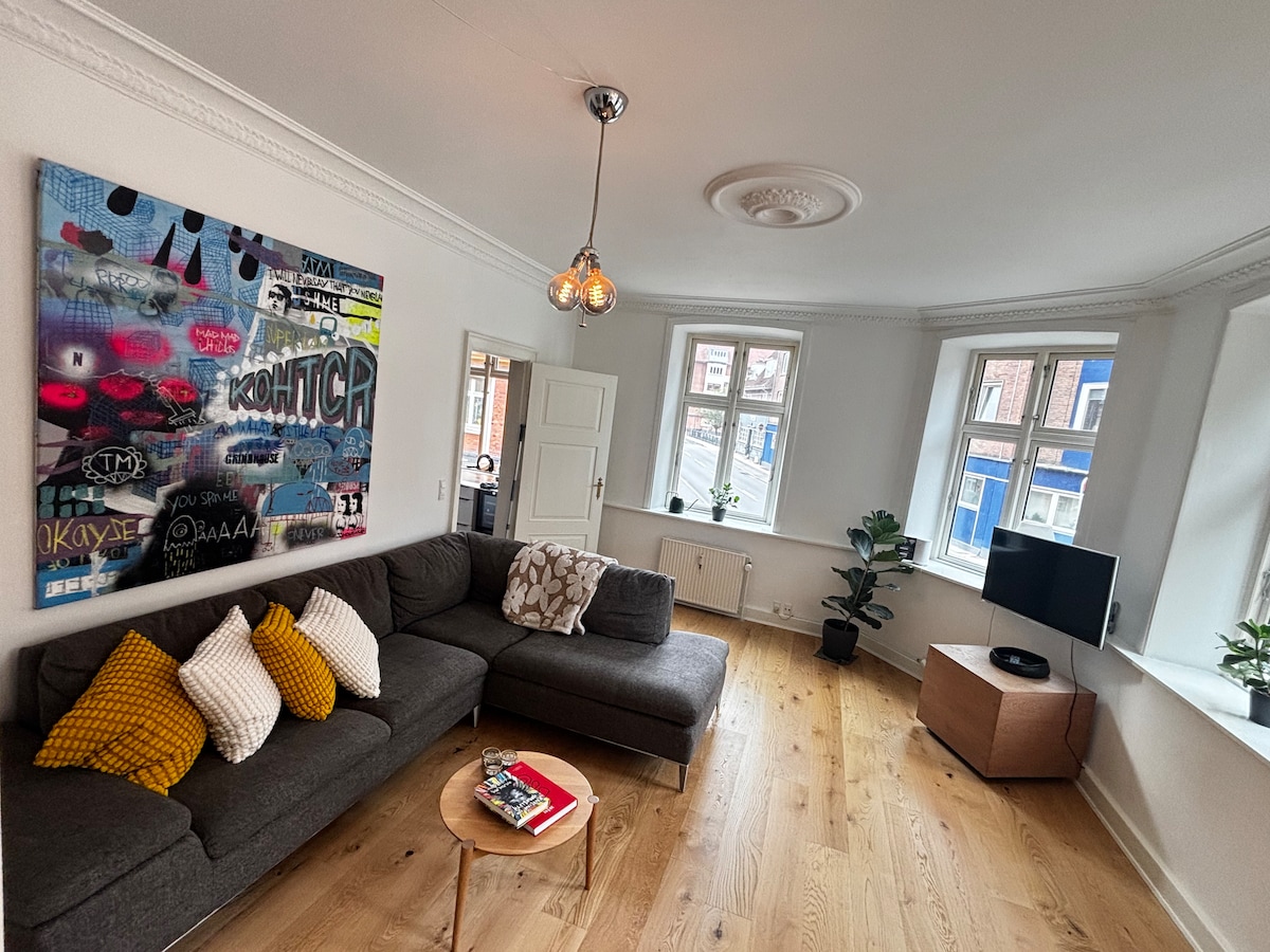 Bo centralt i en hyggelig lejlighed med charmerende detaljer. Highlights: ✨ Gåafstand til gågaden, banegården, letbanen og indkøbsmuligheder 🧘♀️ Roligt kvarter 🚘 Gratis parkering lige ved boligen 🌱 Gårdhave Hvis I ikke spiser i byen, så rummer lejligheden et stort køkken med plads til madlavning. Kogebøgerne står allerede fremme - både til veganske- og kødretter. Du er på ferie - så der er naturligvis også opvaskemaskine 🧼 Lejligheden vil indeholde andre møbler fra januar 2026 ☝️