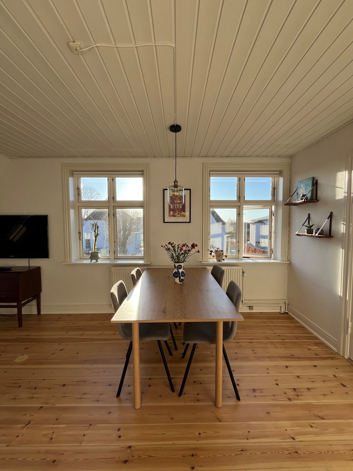 Enjoy a calm, centrally located stay in our recently fully remodeled 75 m² apartment. Ideal for solo travelers or couples exploring Odense. Highlights: - Large bedroom with king-size bed - Fully equipped kitchen - 75” Samsung Frame TV - Ample storage - Outdoor patio set - Cozy Danish hygge throughout - Optional queen air mattress - Keyless entry This is our personal home in Denmark, thoughtfully renovated, and we’re excited to share it with you.