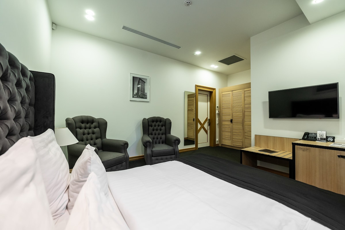 Номер площадью 23 м² расположен в тихом внутреннем дворе, поэтому вы сможете наслаждаться спокойным сном даже в центре городской жизни. Всего в нескольких шагах — главные достопримечательности, рестораны, кафе, торговые улицы и деловые локации.