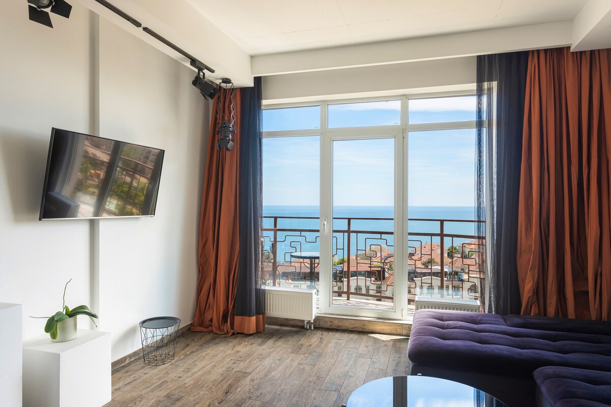 Новые Апартаменты с незабываемым прямым видом на сияющее море, своя террас. Находится в Одессе, в 5 минутах ходьбы от пляжа . К услугам гостей бесплатный Wi-Fi. Все 2 спальные зоны, в каждой зоне кондиционером,телевизором, а собственная ванная комната укомплектована бесплатными туалетно-косметическими принадлежностями. Из окон открывается вид на море Ночные клубы,Ибица,рестораны, 5-10 минут от дома