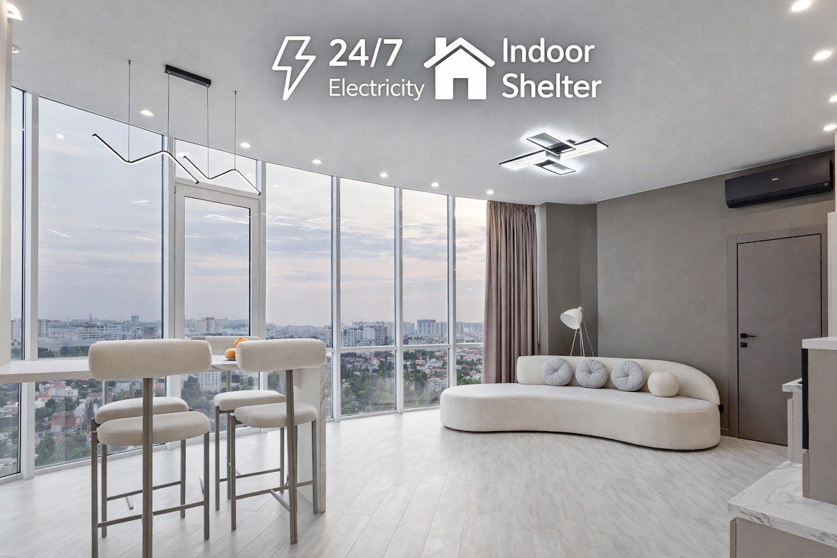 🏙️ Located on the 21st floor of a 23-story building. 🕓 Check-in anytime, 24 hours a day! No worries if you arrive late at night 🌙 ❗ All bedding is professionally cleaned in a dry cleaner! ❗ Indoor Shelter! (Undeground Parking) 💰 Included in the price: 🛏️ Comfortable Stripe Satin bed linen 🍽️ All dishes and kitchen utensils 🩴 Disposable slippers 🧼 Soap and shower gel 🌐 High-speed Wi-Fi internet ☕️ Espresso coffee machine + coffee 🍵 Tea assortment in sachets