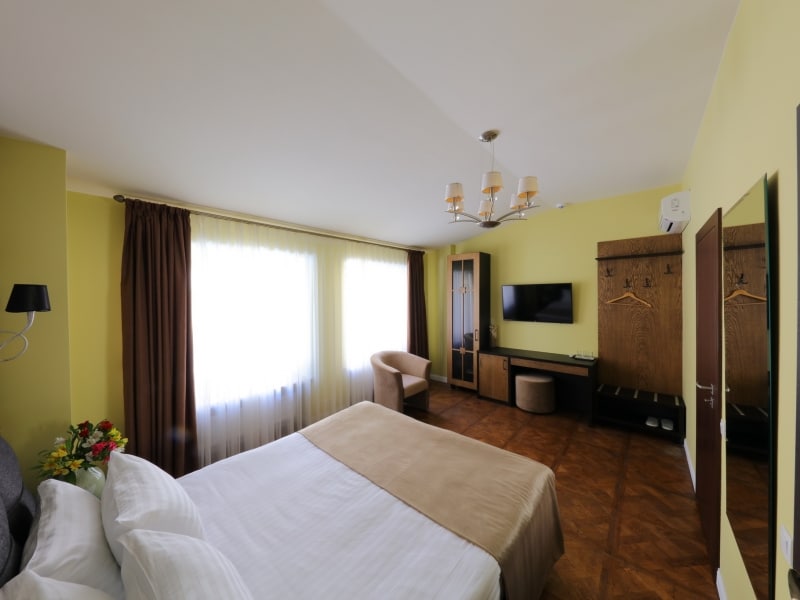 At your service there is a modern LCD-TV with a large selection of TV channels, a refrigerator, a desk, armchairs, a safe, a climate control system.