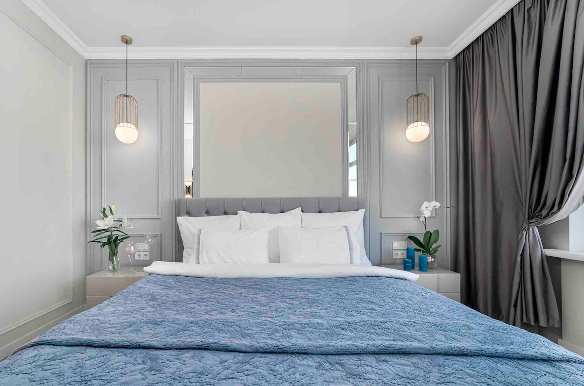 🏙️ Located on the 21st floor of a 25-story building. 🕓 Check-in anytime, 24 hours a day! No worries if you arrive late at night 🌙 ❗ All bedding is professionally cleaned in a dry cleaner! ❗ Indoor Shelter! (Undeground Parking) 💰 Included in the price: 🛏️ Comfortable Stripe Satin bed linen 🍽️ All dishes and kitchen utensils 🩴 Disposable slippers 🧼 Soap and shower gel 🌐 High-speed Wi-Fi internet ☕️ Espresso coffee machine + coffee 🍵 Tea assortment in sachets