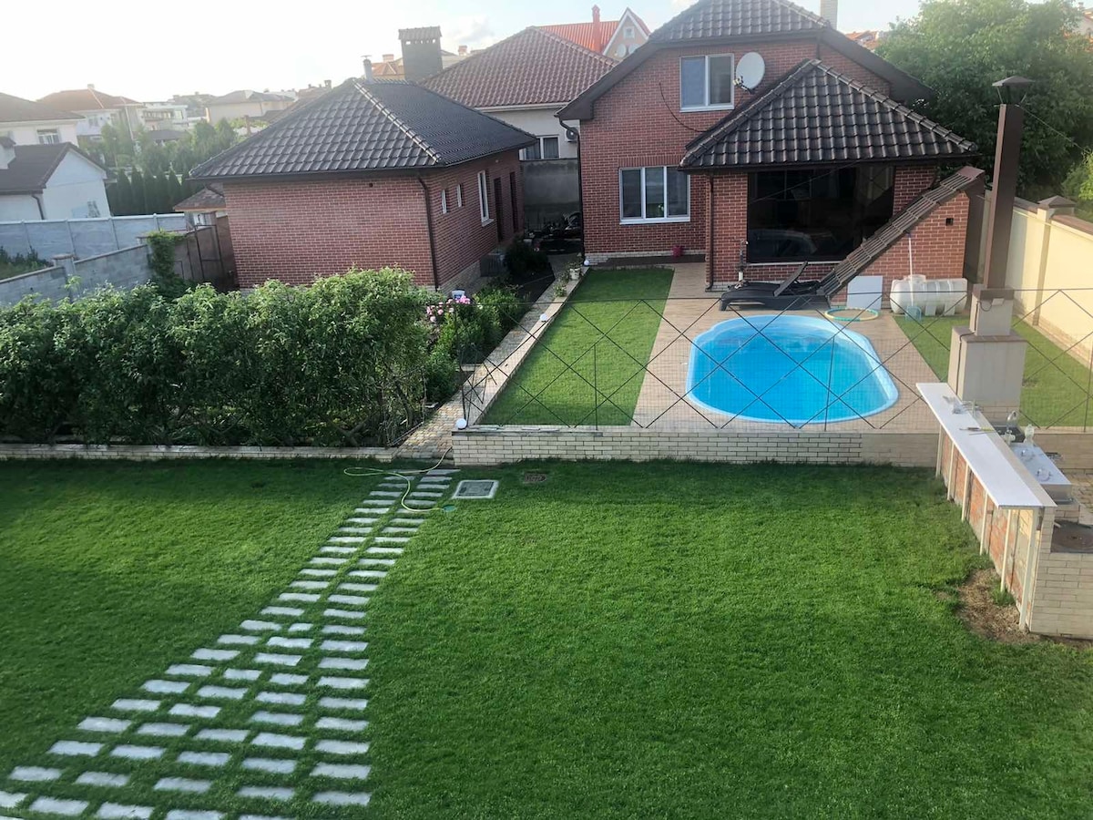 Отдельно стоящий дом два этажа на первом большая гостинная с кухонной зоной , вся необходимая посуда и техника в наличи ,туалет душ бассейн баня на дровах ,второй этаж три спальни в каждой санузел балкон. Дом находится рядом с трц Ривьера до моря 15 мин.пешком новые пляжи Фонтанки с ресторанами и детскими площадками.