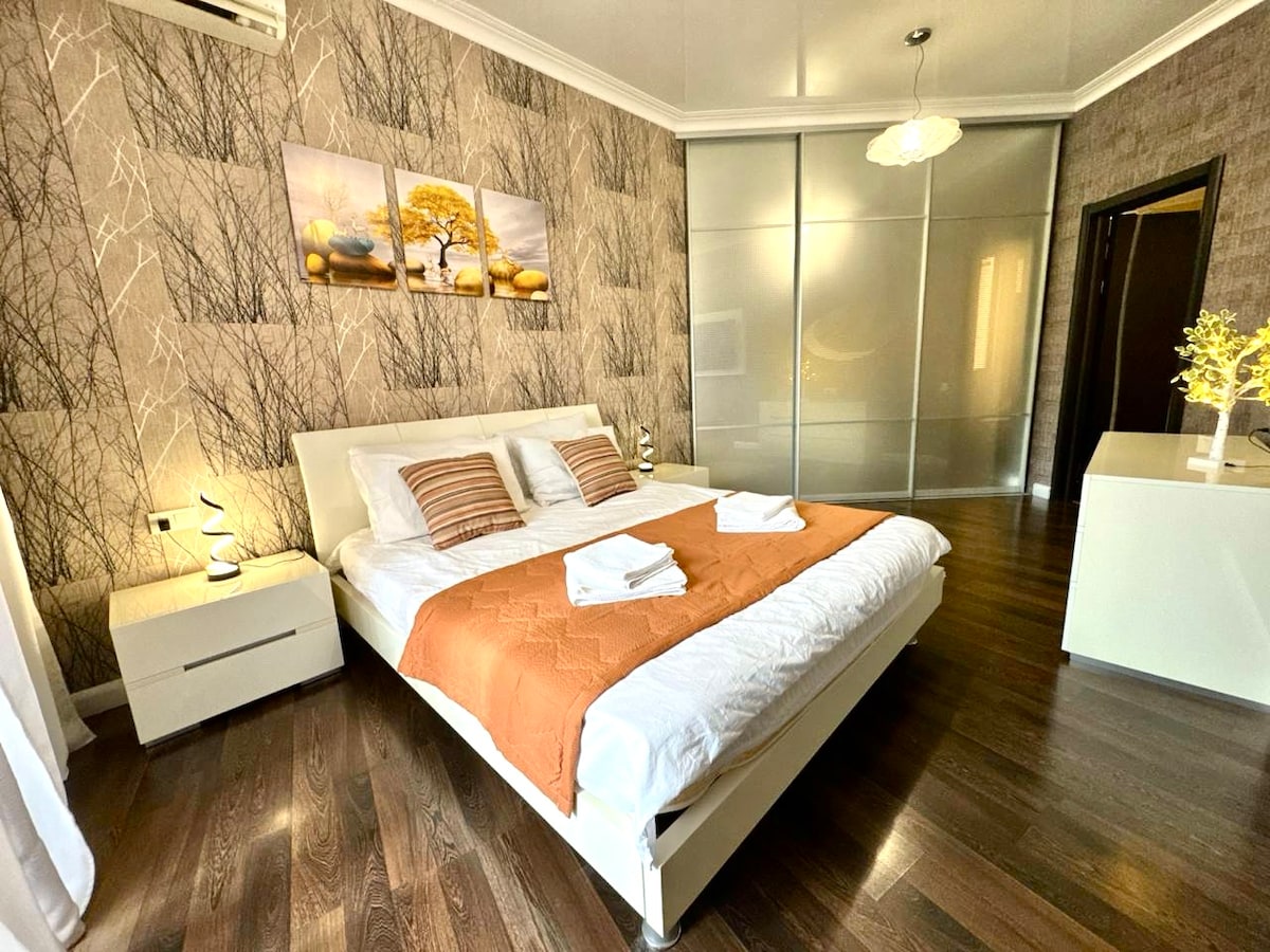 🏙️ Located on the 21st floor of a 25-story building. 🕓 Check-in anytime, 24 hours a day! No worries if you arrive late at night 🌙 ❗ All bedding is professionally cleaned in a dry cleaner! ❗ Indoor Shelter! (Undeground Parking) 💰 Included in the price: 🛏️ Comfortable Stripe Satin bed linen 🍽️ All dishes and kitchen utensils 🩴 Disposable slippers 🧼 Soap and shower gel 🌐 High-speed Wi-Fi internet ☕️ Espresso coffee machine + coffee 🍵 Tea assortment in sachets