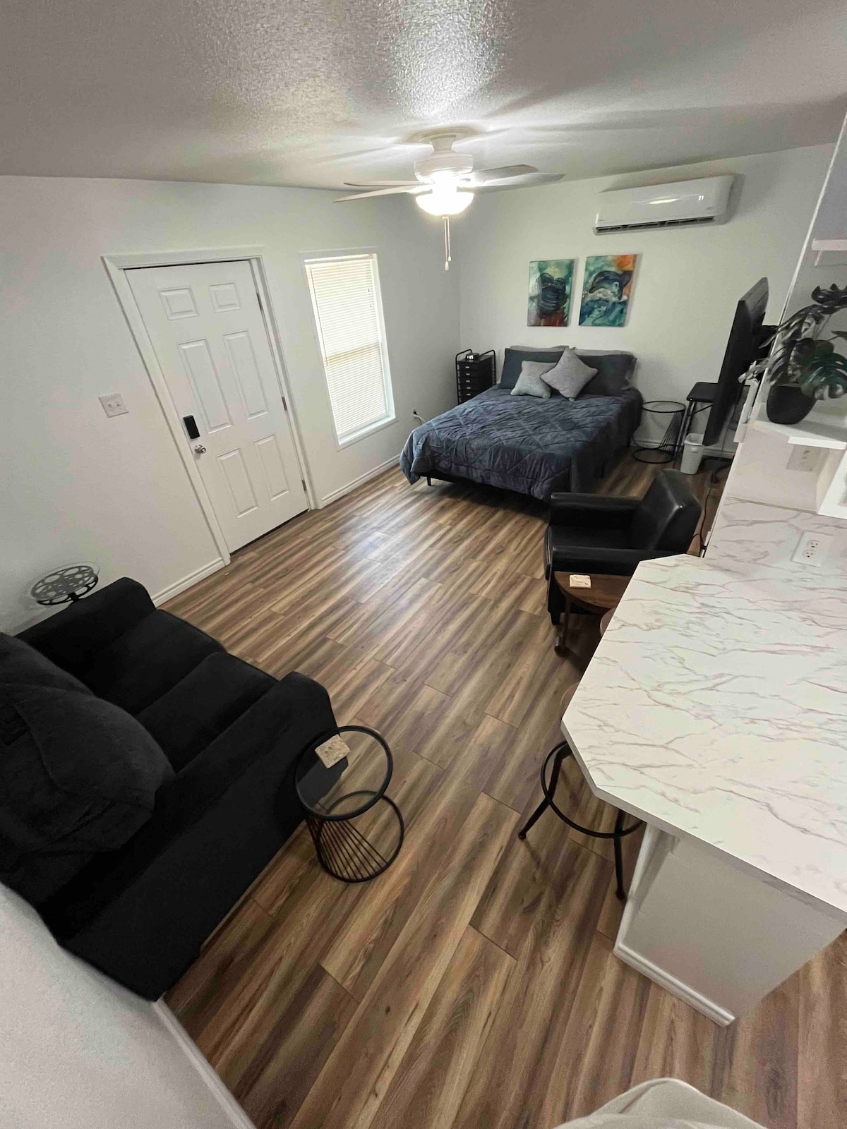 Welcome to your private West Texas retreat! This detached unit is designed for comfort, privacy, and convenience. Inside, you’ll find a plush queen-sized bed, in-unit washer and dryer, a compact kitchenette with cooktop and refrigerator, plus a smart TV and fiber internet for entertainment and productivity. Each unit is fully detached, meaning no shared walls and no noise from neighbors — just peace and quiet during your stay. Located close to dining, shopping, and major Odessa roadways.