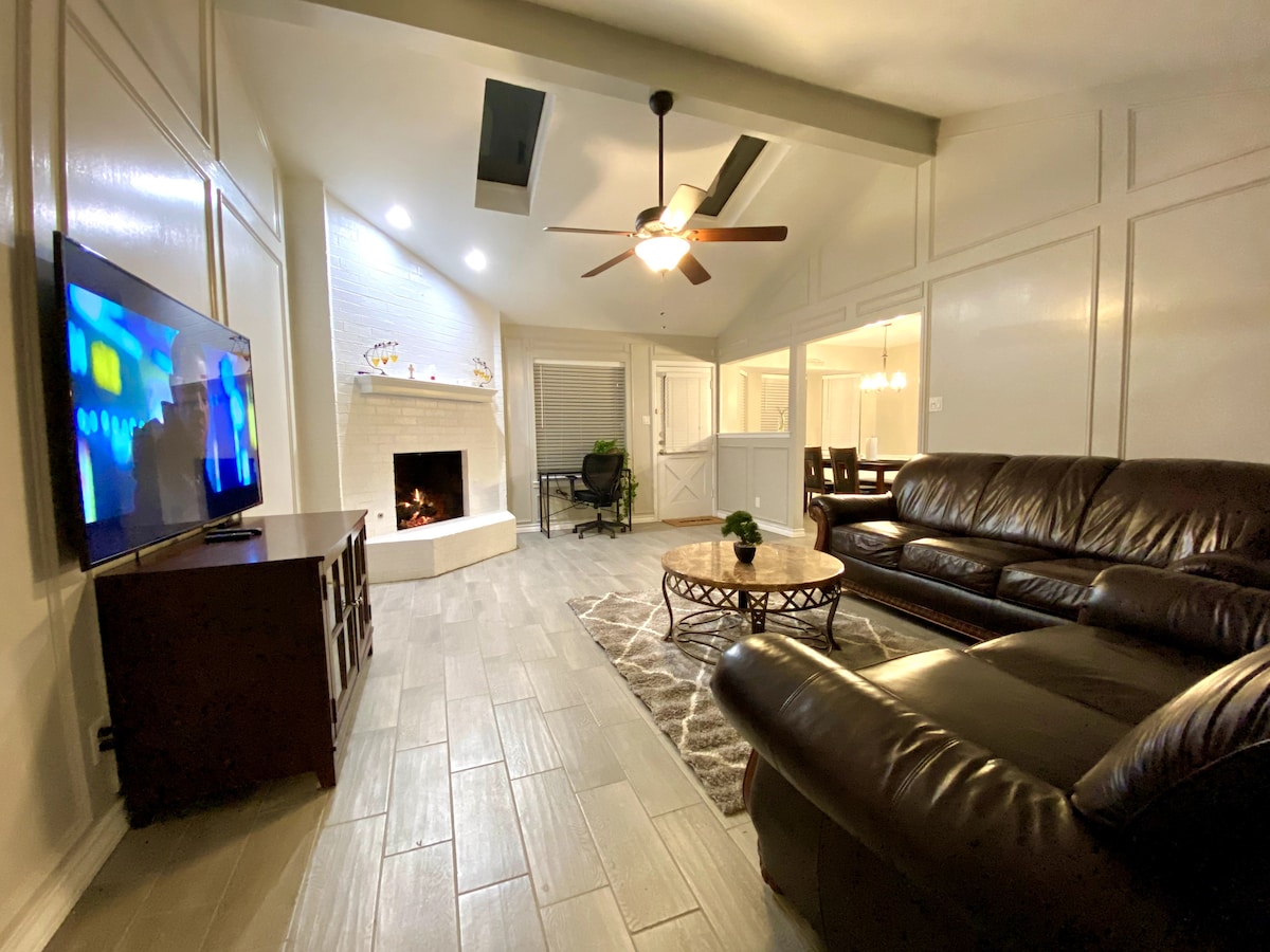 Terrific updated Newer home. Welcoming entry space into a very comfortable & stylish living area. OPEN plan: Living, Dining, & kitchen w/High ceilings, White LED Lighting, Smart 50" TV in the living room. Sequestered Owners Retreat, double closets, soaking tub, separate shower. SUPER FAST 1G WIFI! Pots/ pans, Full Dish Set, Glasses, Iron, Toiletries, & complimentary snacks. UPDATES AS OF 2024 - New washer /dryer, dishwasher, interior paint, lighting, smart TVs in all bedrooms. GRILL REMOVED