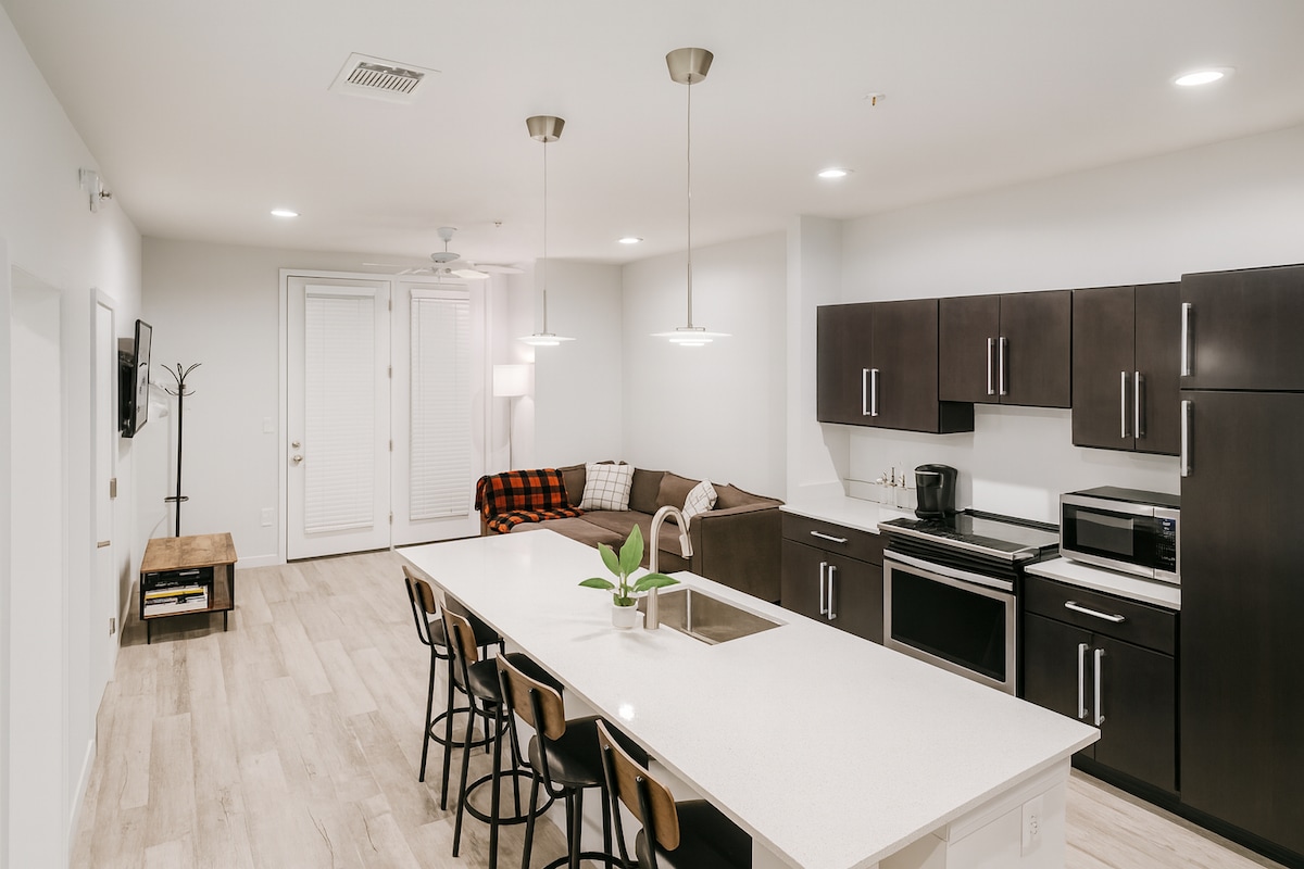 Welcome to your home away from home! This cozy, stylish space has been thoughtfully refreshed with comfort and modern design in mind. Creating a welcoming environment for work or relaxation. What Guests Will Love • Bright, clean interiors with a modern, natural feel • Comfortable work and living areas with thoughtful décor • Well-appointed kitchen and organized amenities for effortless stays