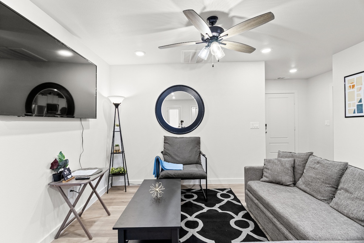 Welcome to this spacious and serene townhome, styled in a mid-century modern aesthetic. It is centrally located with numerous restaurants, shopping and grocery stores all within a 2 mile radius (7 minute drive). Whether here for a couples getaway or traveling for business, we are here to provide you with a relaxing and comfortable stay!