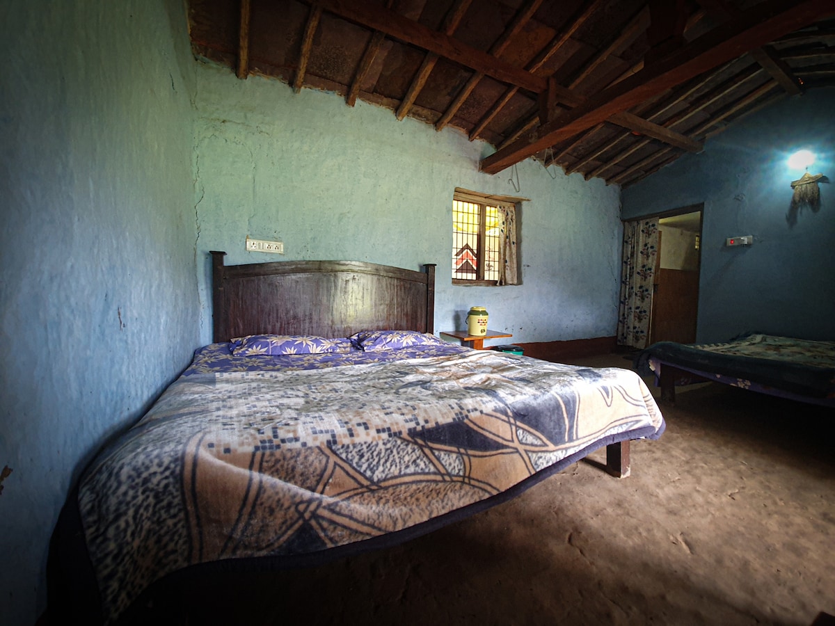 Sri Tulasi Eco Farm Stay is a beautiful organic farm around 2acres, and this wooden house with fresh water private pool with perfect river views makes your stay super memorable. Super comfortable luxury king bed, huge balcony and all these in lap of nature. One side you have river view, other side has lawn view. When it comes to activities play badminton with barefoot, take a dip in our freshwater swimming pool or simply bath in river Saradha, net cricket, fishing and gardening.