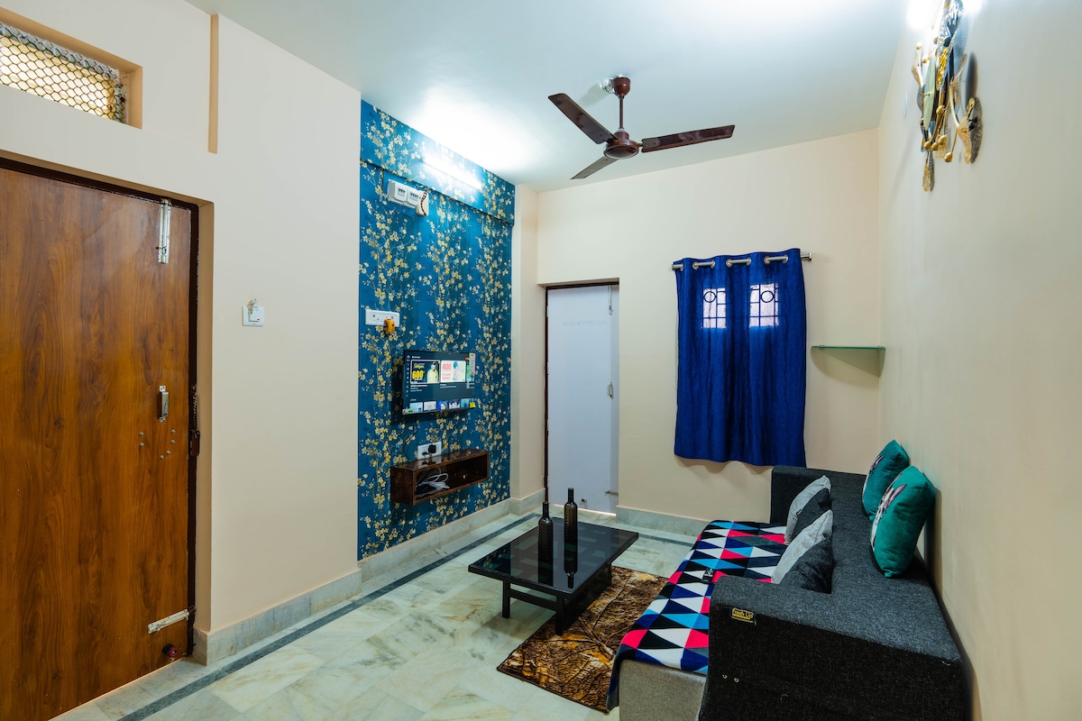 Welcome to our home! Our fully private flat is perfect for your comfortable and relaxed stay, whether you're visiting for work, a short getaway, or a family trip. Ideal for small families, solo travellers, working professionals, bachelors. Note: Unmarried couples are not allowed. The space includes: - High speed internet - Mini cooler - Geyser - Kitchen equipped with kettle and basic cutlery - Access to a terrace for fresh air and quiet moments -Well-connected to key parts of the city