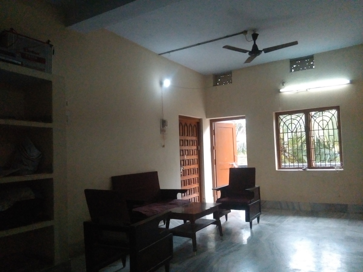 Myra’s Mansion Relax with the whole family at this peaceful place to stay at a furnished 2 separate one bhk villas in the lap of nature, approx 2.5 kms from the sea with peaceful environment at Puri Konark Marine Drive 2 individual villas with 1 bedroom, living room, kitchen, bathroom each. Can accommodate max 8 people comfortably Ample parking space