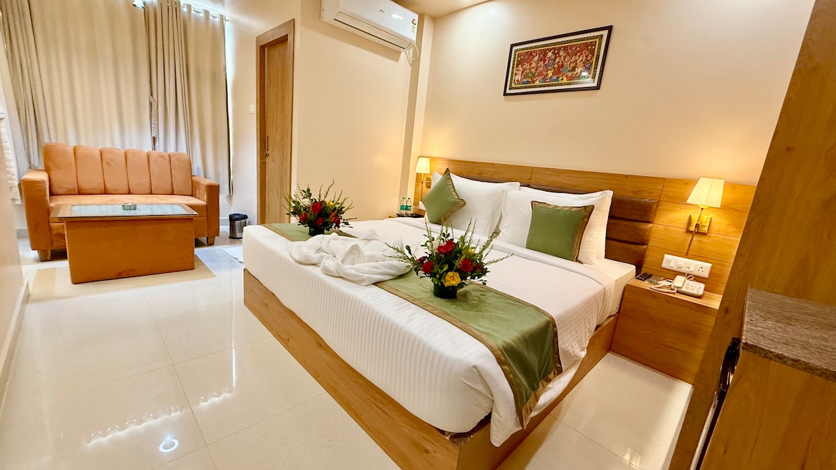 Welcome to Bibek Residency, featuring a Deluxe Trippple (3P) Bedroom – Perfect, Prime & Practical! Ideally located in Ashok Nagar, just 3 km from Biju Patnaik Airport and 1 km from Bhubaneswar Railway Station, it offers a king-size bed, single bed, sofa set, dining area, bathroom & balcony — perfect for a family of four seeking comfort, convenience & style in the city’s heart.