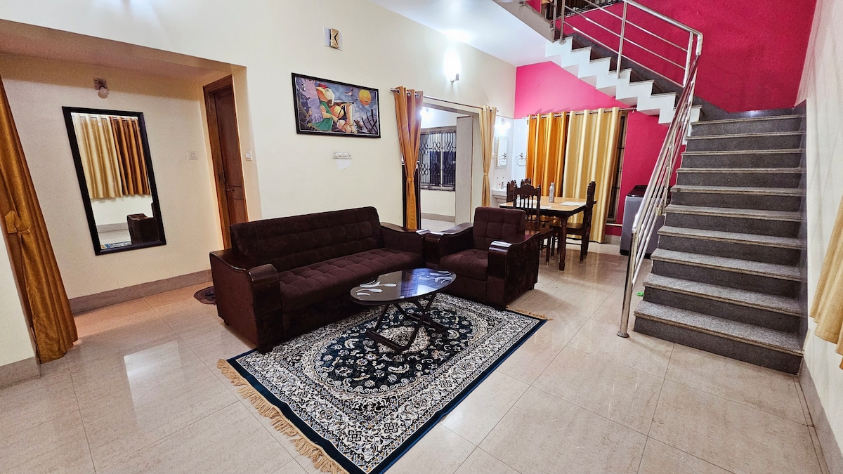 Architect's home -Price shown for 2 guests only. (Enter actual guest details for final pricing) -Extra beds for more than 4 guests. Can accomodate upto 10 with additional charge ⚠️Usage of Living hall AC is chargeable Two living hall Ac -800 INR One AC - 500 INR 🇮🇳Thematic Interiors 🏙️City center ❤️ Couple Friendly 🌿 XL spacious 2BHK ❄️AC in Living Room & Bedrooms 📍Prime location 💯Fast Wifi 🖥️ FREE NETFLIX Ground floor apartment 👑Managed by Superhosts 👌