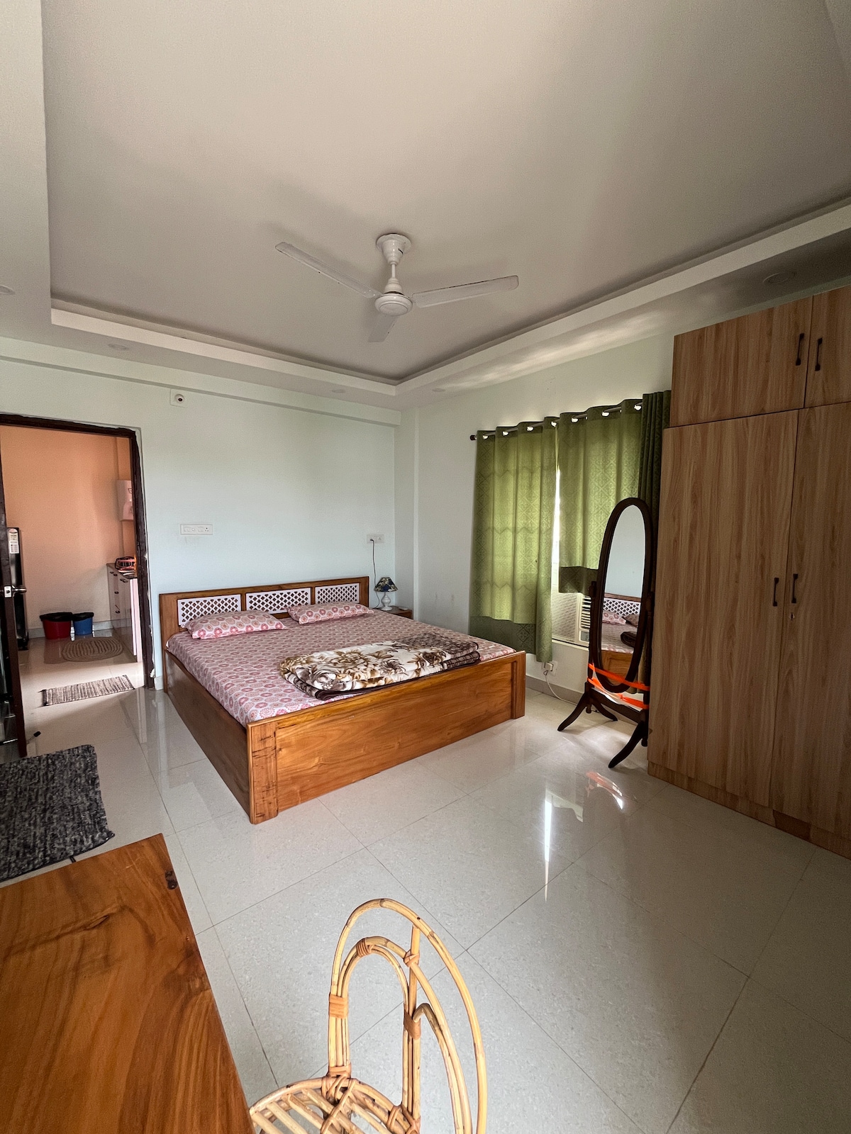 Welcome to Amber & Jade Stays, your cozy home away from home on the peaceful outskirts of Bhubaneswar. This stylish 1BHK blends comfort and nature with a bright living area, fully equipped kitchen, and a plush queen-size bedroom. Enjoy modern amenities like Wi-Fi, AC, and a smart TV in a serene, pet-friendly setting surrounded by greenery. It's perfect for couples, travelers, or remote workers seeking peace and convenience. Bring your furry friend and unwind in comfort at Amber & Jade Stays. 🐾