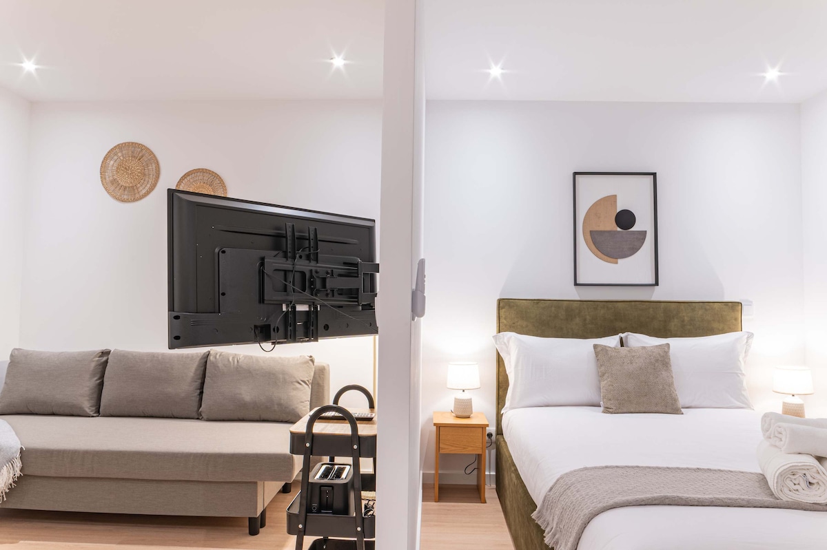 Welcome to Campolide Charming Studios & Apartments, your stylish hideaway in Bairro da Liberdade — a peaceful neighborhood just minutes from bustling Amoreiras and Marquês de Pombal. This charming studio apartment is thoughtfully designed to offer comfort, functionality, and a cozy home-like feel in the heart of Lisbon. Perfect for couples, solo travelers, or a small group of up to 3 guests, this studio blends convenience with charm in every detail.
