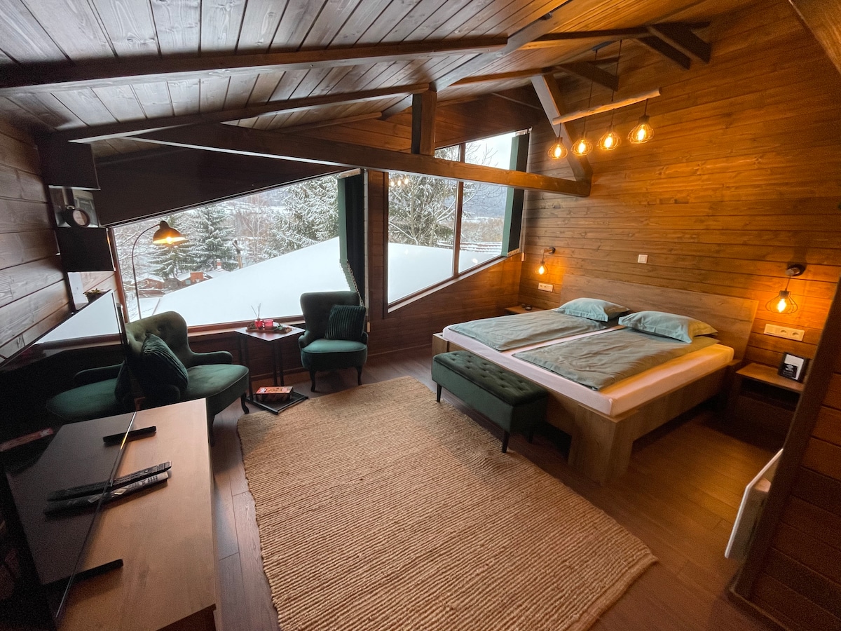 A unique peaceful retreat located near beautiful Korond. The perfect getaway for those looking to escape the hustle and bustle of daily life. As you relax in this treehouse's peaceful and serene surroundings, you'll feel your worries and stress melting away. It has all the amenities you'll need to feel at home, including an outdoor kitchen and dining space, comfortable beds, and an indoor fireplace for those cooler nights.